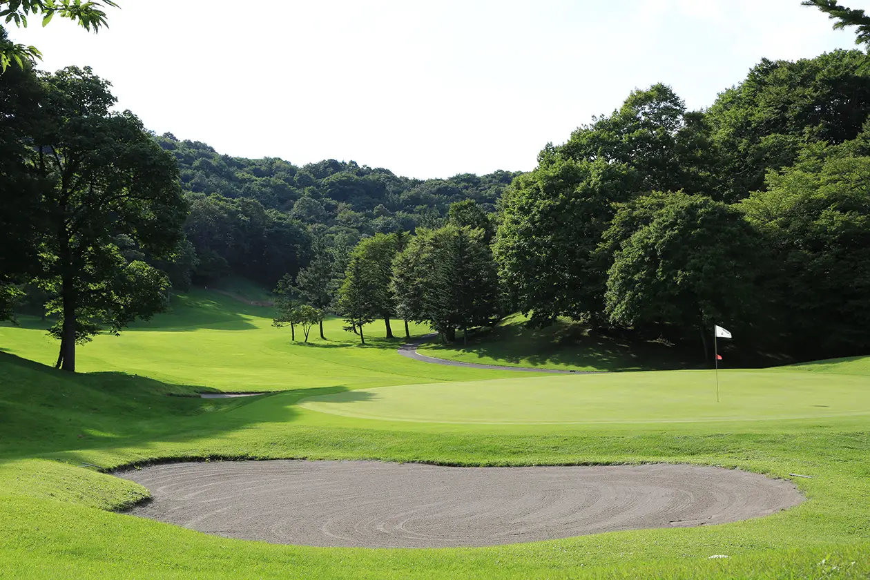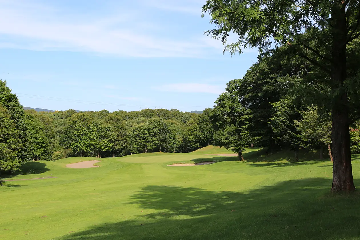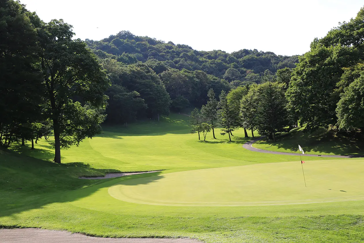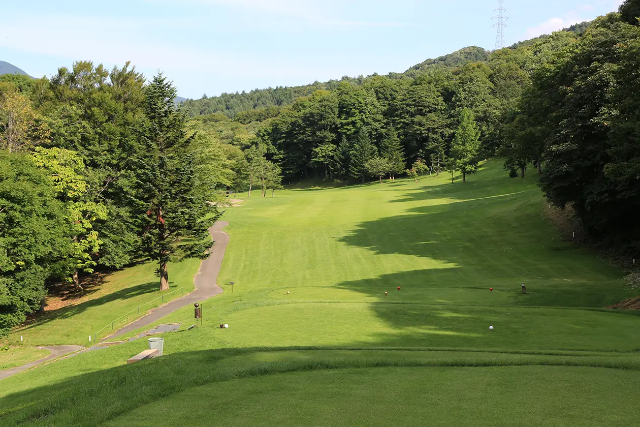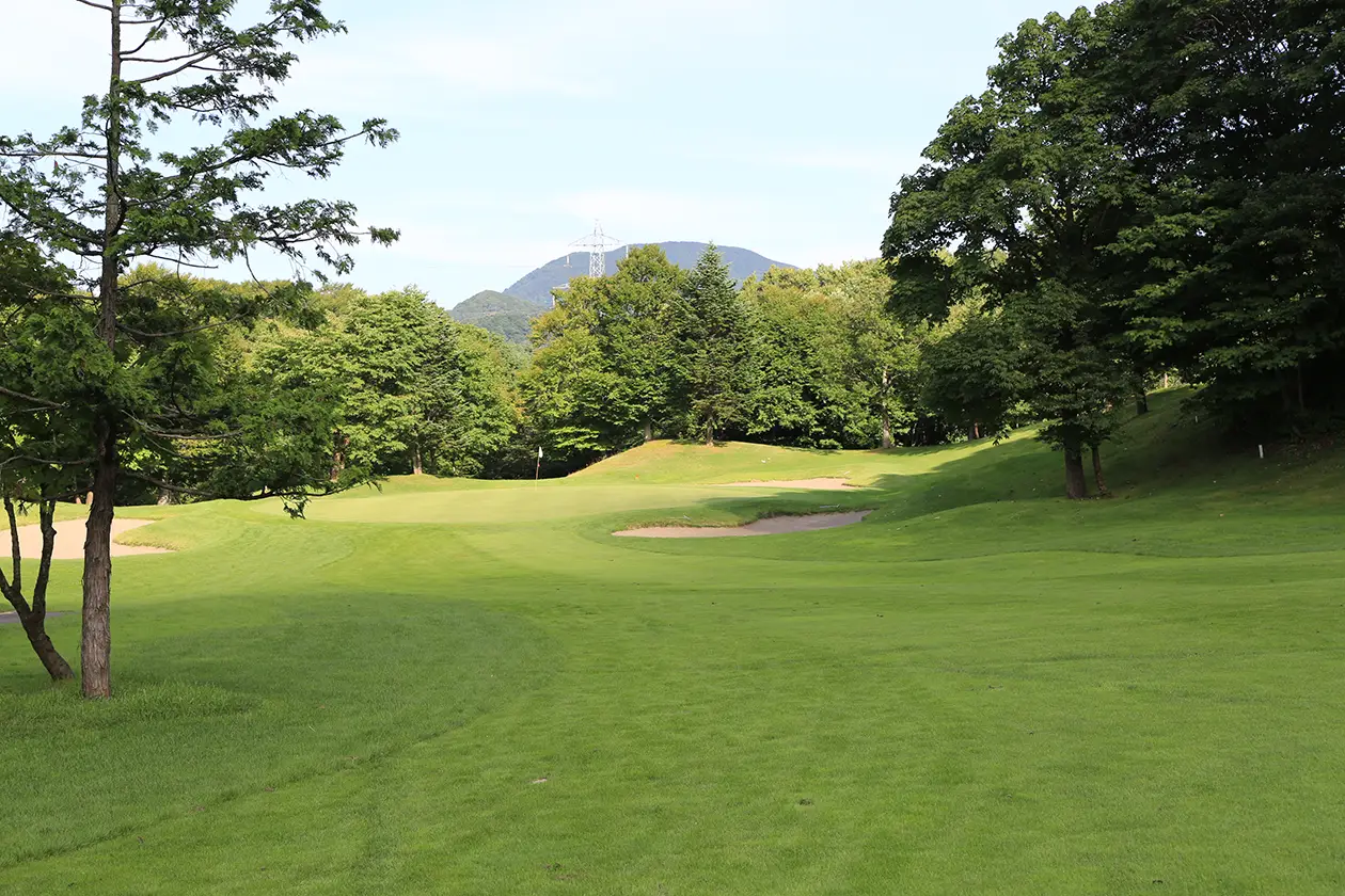 右サイドねらいでセカンド地点より打ち下ろしになるため距離を合わせグリーンセンターへ。